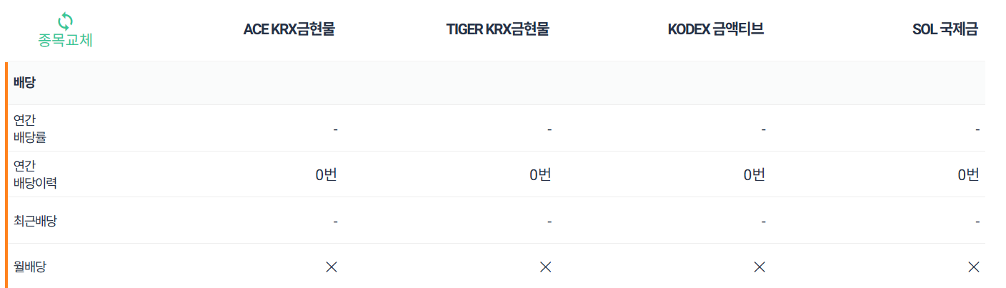 ACE KRX 금현물 2. ETF별 배당률 비교