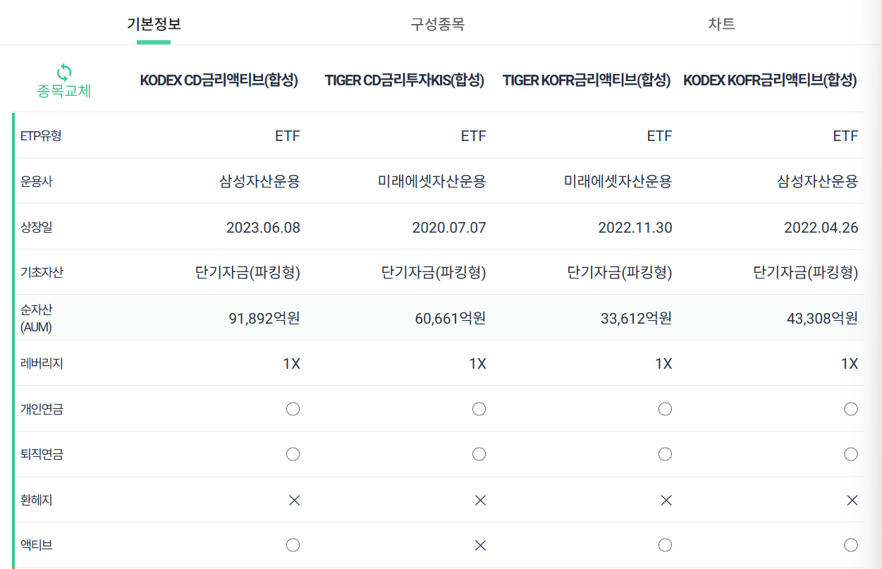 파킹형 ETF에 종목에 대한 비교를 해보았으며 수익 및 수수료까지 추가로 자세히 알아보고 결정하시면 될 것 같습니다.