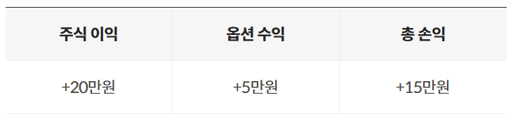만약 커버드콜 전략을 사용하지 않았다면 A투자자는 주식으로 총 10만원의 손실을 보게 되었을겁니다.